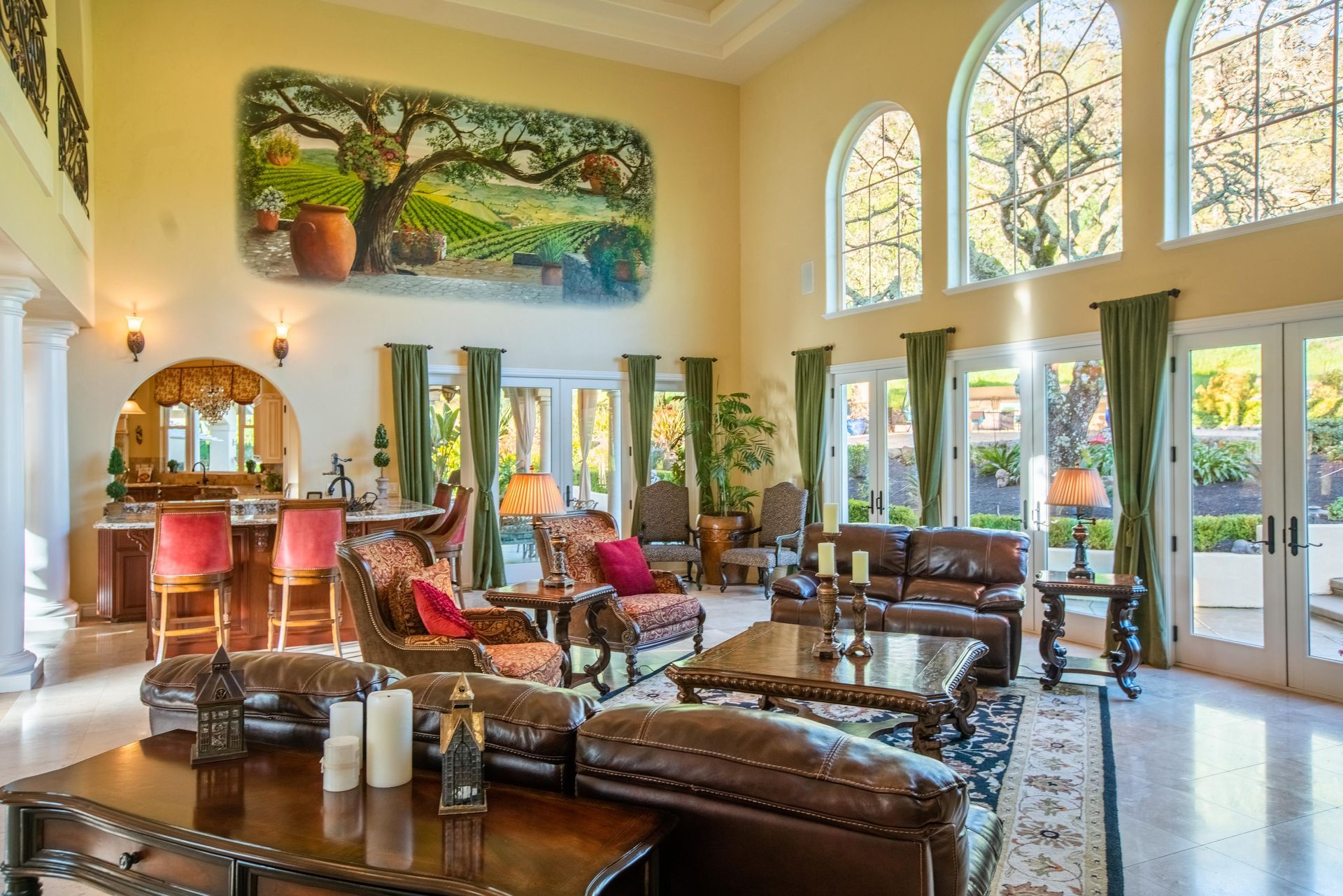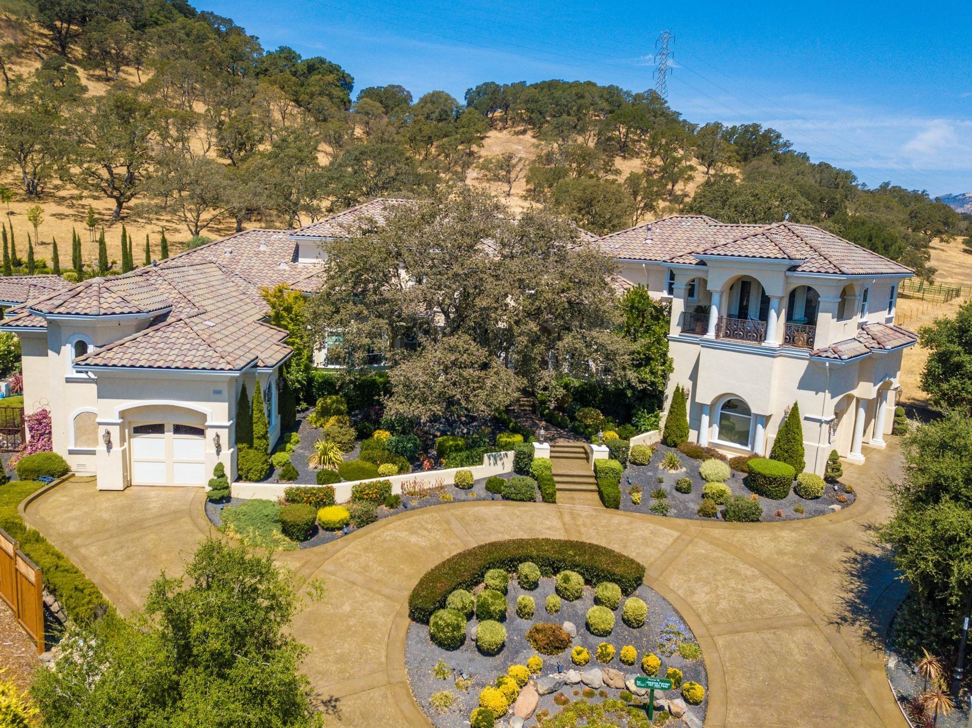 Stunning custom built estate in a private court, in the prestigious Eastridge gated community shares only beautiful Rockville Regional park as a rear neighbor. Panoramic views boasting Mt.Diablo from the primary balcony. Close proximity to renowned Napa Valley. Easy access to Sacramento & SF make this homes location convenient to all. A grandiose entrance includes a large bar, featuring a copper sink & wine fridge. All guest bedrooms have their own ensuite. Primary bedroom features are expansive; a private balcony, sitting room & spa like bathroom features including a chandelier over the jetted tub & radiant flooring. The gourmet kitchen leaves nothing to be desired with a built in sub zero refrigerator, two copper sinks & high end appliances. The heated salt water pool/spa make entertaining easy all year. Four fire places, a pizza oven, surround sound system, green house, out door living with a built in grill, sink & fridge, peach/lime/lemon trees make this property truly special.